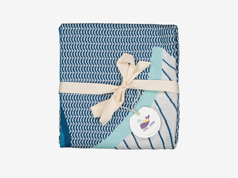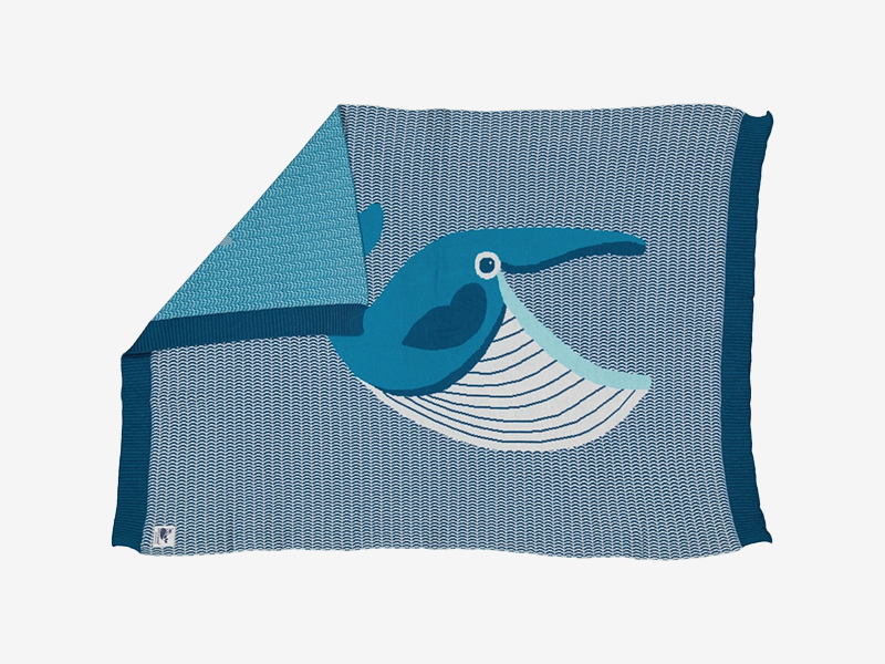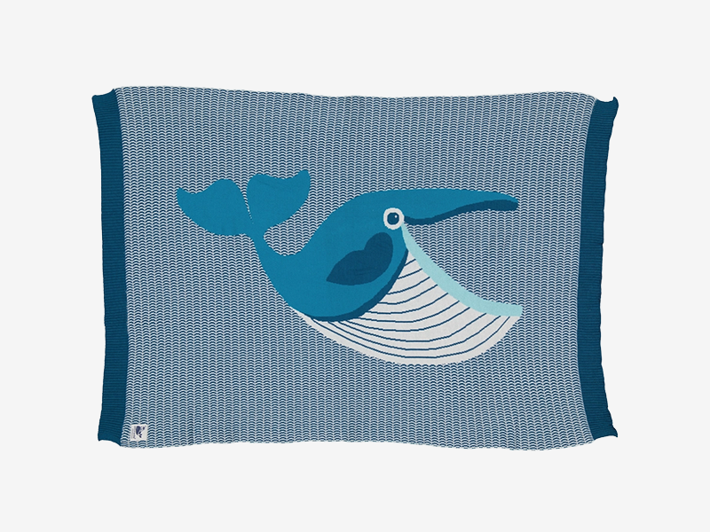 Dette charmerende tæppe, der er blødt strikket for at give maksimal komfort, præsenterer et yndefuldt hvaldesign i rolige blåtoner, der er sikker på at indbyde til afslapning og søde drømme.